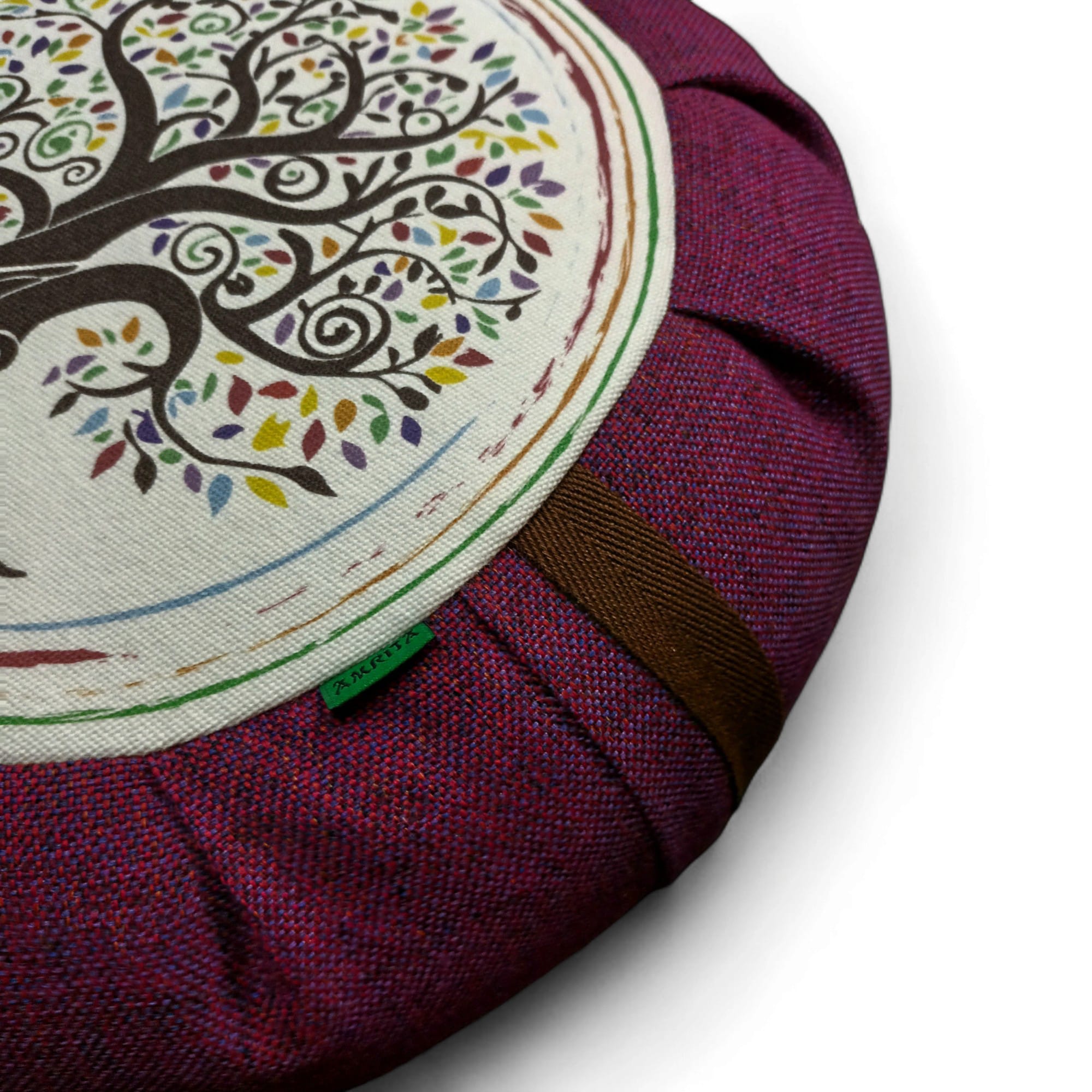 Cojín zafu de meditación Árbol de la vida granate